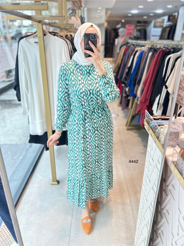 4442 Desenli Viskon Elbise